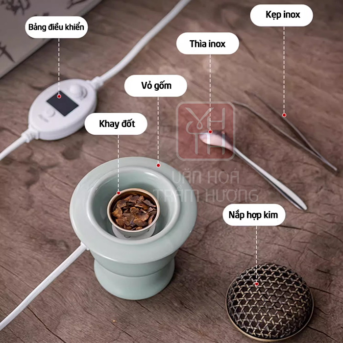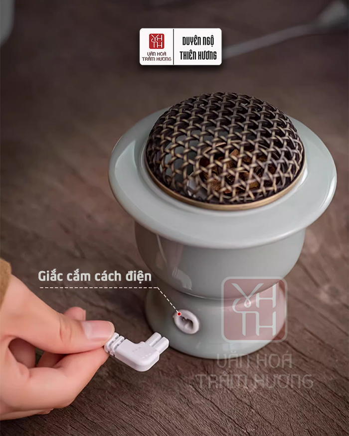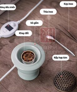 - Bộ phận làm nóng: Đây là phần cốt lõi, chuyển đổi điện năng thành nhiệt năng để làm ấm trầm hương, giúp tinh dầu trầm bay hơi và tỏa hương thơm dịu nhẹ.