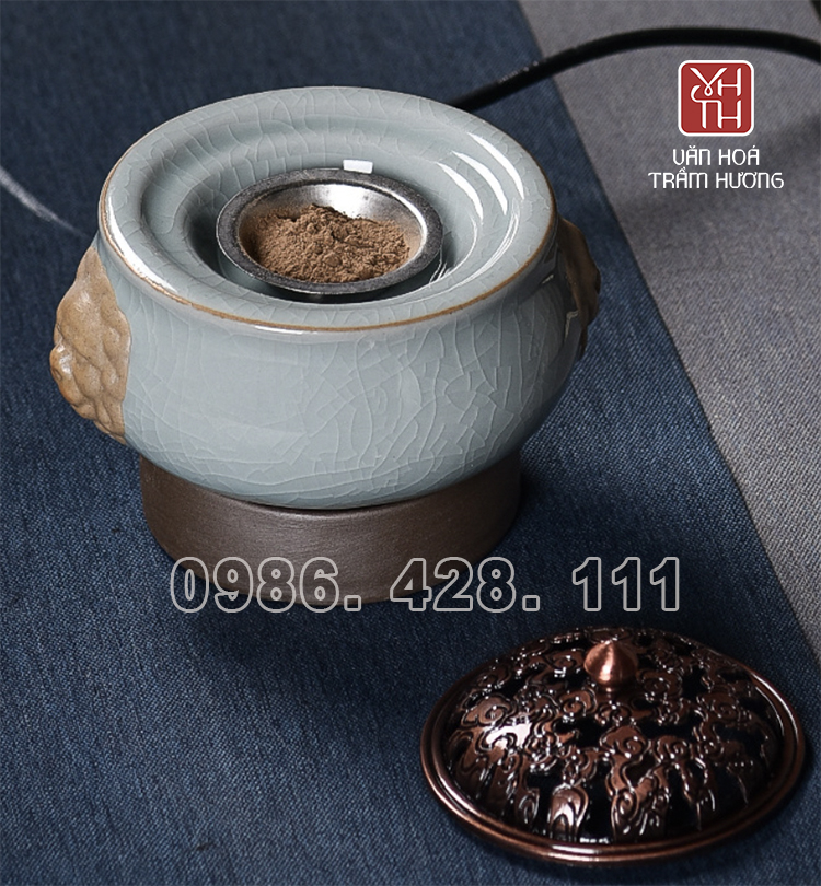 Lư xông trầm bằng điện gốm men ngọc