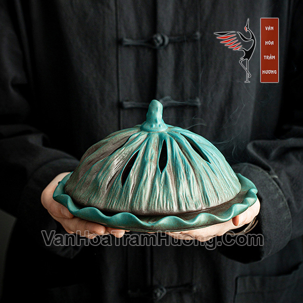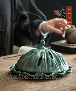 Lư xông trầm bằng gốm dạng lá sen từ Văn Hóa Trầm Hương là kiệt tác gốm sứ cao cấp, mang thiết kế lá sen thanh tịnh, kết hợp giá trị tâm linh, phong thủy và thẩm mỹ. Với men xanh ngọc bích, nắp chạm khắc tinh tế, lư không chỉ là dụng cụ xông trầm mà còn là vật phẩm trang trí, mang lại hương thơm thanh khiết, bình an và tài lộc. Lý tưởng cho thờ cúng, thiền định, thư giãn hoặc làm quà tặng, lư xông trầm này xứng đáng là lựa chọn hoàn hảo cho người trân trọng giá trị trầm hương và văn hóa Việt Nam.