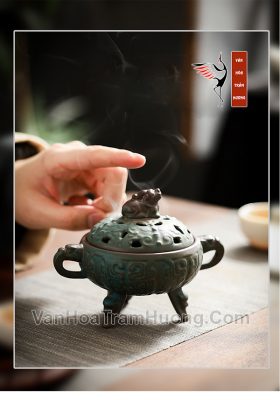 Lư xông trầm bằng gốm – Đỉnh gốm nắp nghê thấp