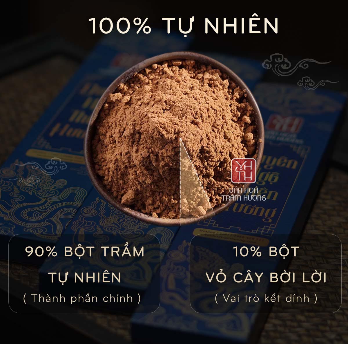 - Sản xuất hoàn toàn từ bột trầm hương tự nhiên, không có chất phụ gia hóa học, hương liệu