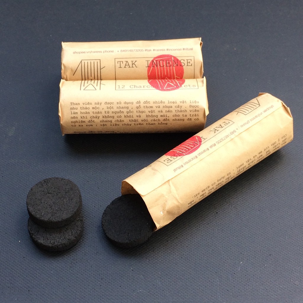 Cuộn 12 viên than nén, kích thước 3.5 cm x 0.8 cm Than viên này được sử dụng để đốt nhiều loại vật liệu như thảo mộc, bột nhang, gỗ thơm và trầm hương.