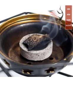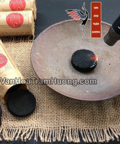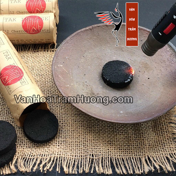 – Đốt các cạnh của viên than trên bật lửa, nến hoặc bếp gas – Đặt than vào lư nhang chịu nhiệt ( sành, sứ, đồng, gang,…) đã lót tro, cát hay muối hột. Chú ý : than phải cháy trên lớp lót tro, cát vì bề mặt lạnh của lư đồng, sành, sứ làm viên than khó cháy hết.